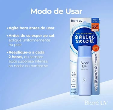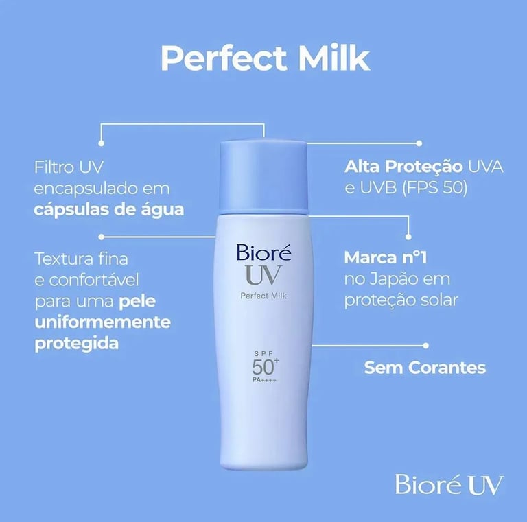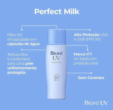 O Bioré UV Perfect Milk SPF 50 une altíssima proteção solar, experiência de uso agradável com toque seco, e ingredientes funcionais que cuidam da sua pele. Se você busca proteção eficaz, compatível com a rotina diária e maquiagem, este protetor solar é excelente.