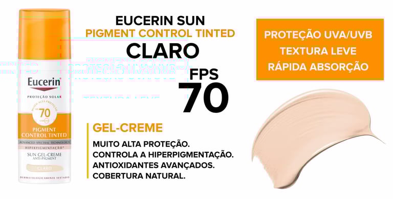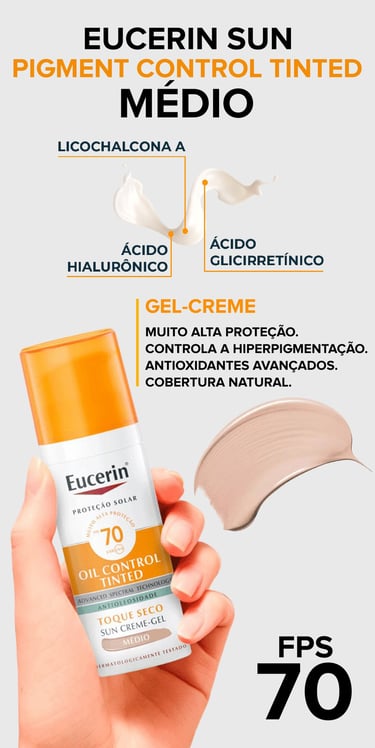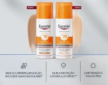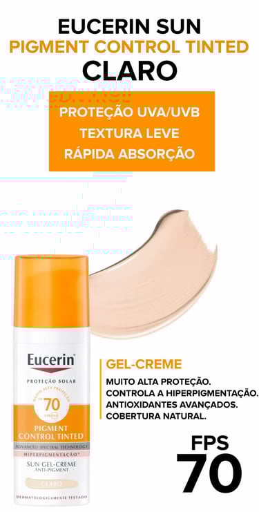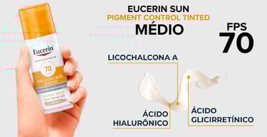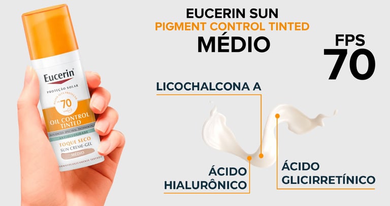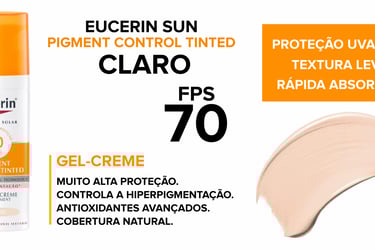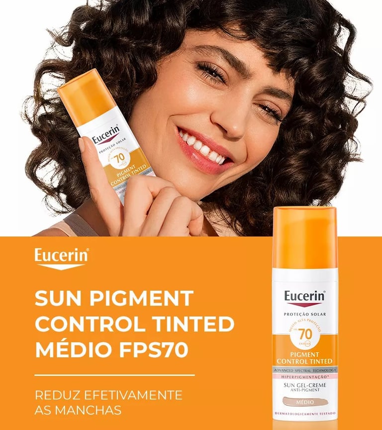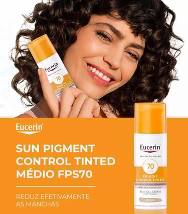 A linha Eucerin Sun Pigment Control Tinted FPS 70 é uma das melhores opções do mercado. Disponível em duas tonalidades (Claro e Médio), ela foi desenvolvida especialmente para peles com tendência a hiperpigmentação, como melasma e manchas solares.